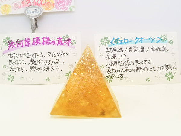 インスピレーション的な部分にも作用し、持つ人の意識や気づき、シフト、変化のスピード、自己の成長や魂の成長の速度を圧倒的に速めるといわれ、現実に起こることや体験がパワフルになっていく特徴があります。また、環境を変えたいけど現実的に無理であったり、家相や間取りの悪い空間、運気の低下など、あらゆるマイナスエネルギーに働きかけ、浄化を促します。